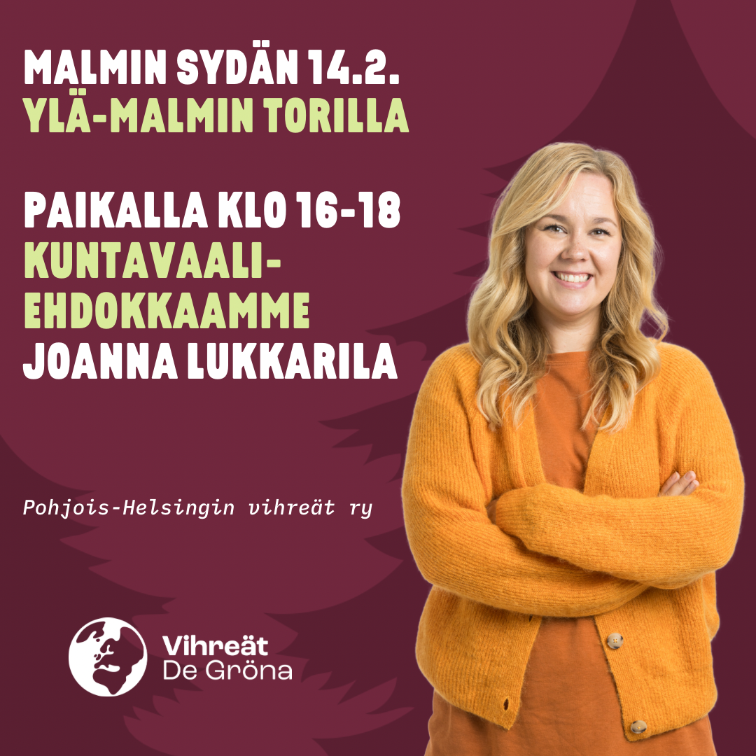 Kuntavaalit lähestyvät! Tulevina viikkoina julkaisemme esittelyt Pohjois-Helsingin vihreiden ehdokkaista ja jaamme tietoa alueemme vihreistä tapahtumista, joihin kaikki ovat tervetulleita. Pidä sinäkin vihreämmän Pohjois-Helsingin puolta ja seuraa somekanaviamme 💚 Facebook: Pohjois-Helsingin Vihreät Instagram: @pohjoishelsinginvihreat
